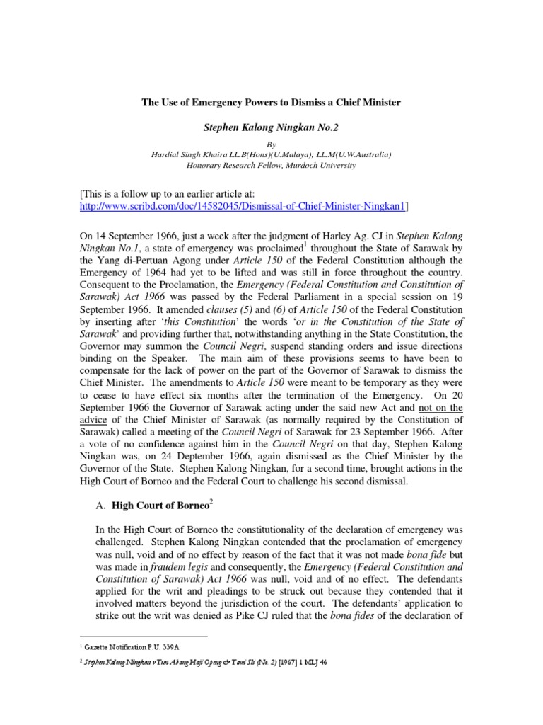 Stephen Kalong Ningkan No 2 Use Of Emergency Powers Pdf Federal Government Of The United States Constitution